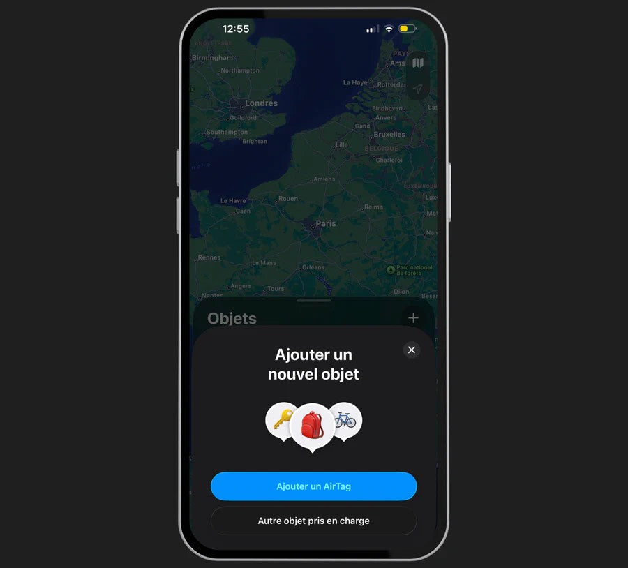 Ouvrez l'application Apple find my (sur iphone) ou Goggle find (sur Android), puis ajoutez votre Carte de suivi Locavo en un clic.